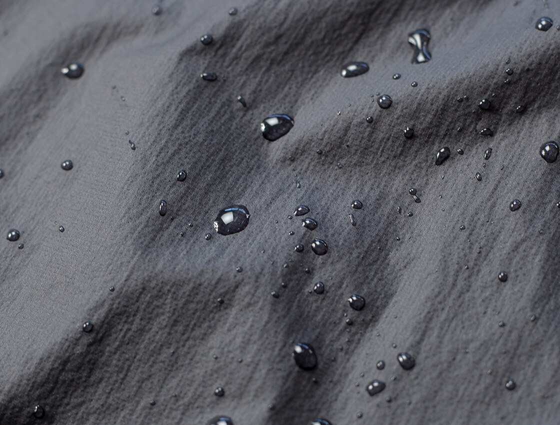 極薄でありながら風を軽やかにいなし、小雨程度ならへっちゃらな撥水性を持ったマイクロリップナイロン。