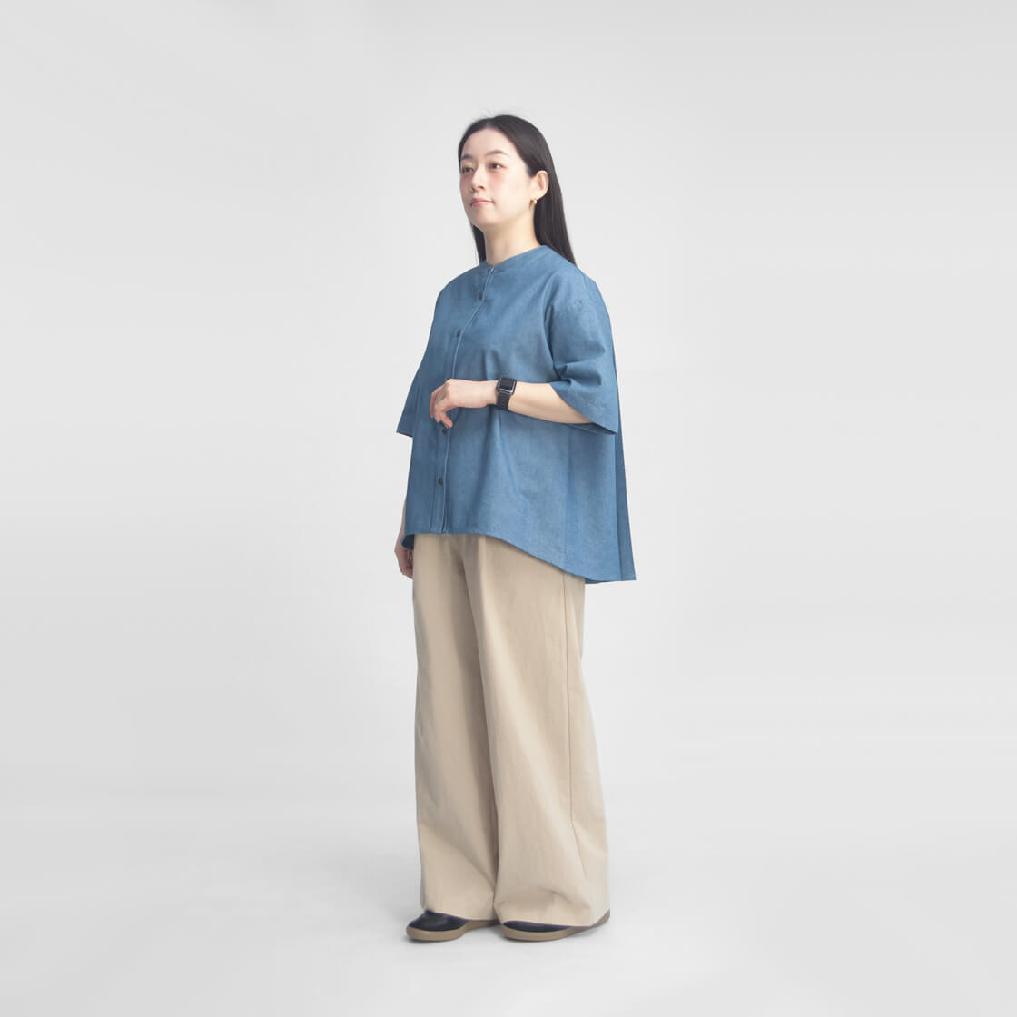 シンプルなTシャツなどと合わせてラフに、シャツやブラウスを合わせればきれいめな印象にもと、合わせるアイテム次第で幅広いスタイリングが楽しめます。さらに、薄手のコットン素材は通気性に優れるだけでなく、お洗濯後も乾きやすく、お手入れが簡単なのも嬉しいポイント。忙しい日常でも頼れる一本です。