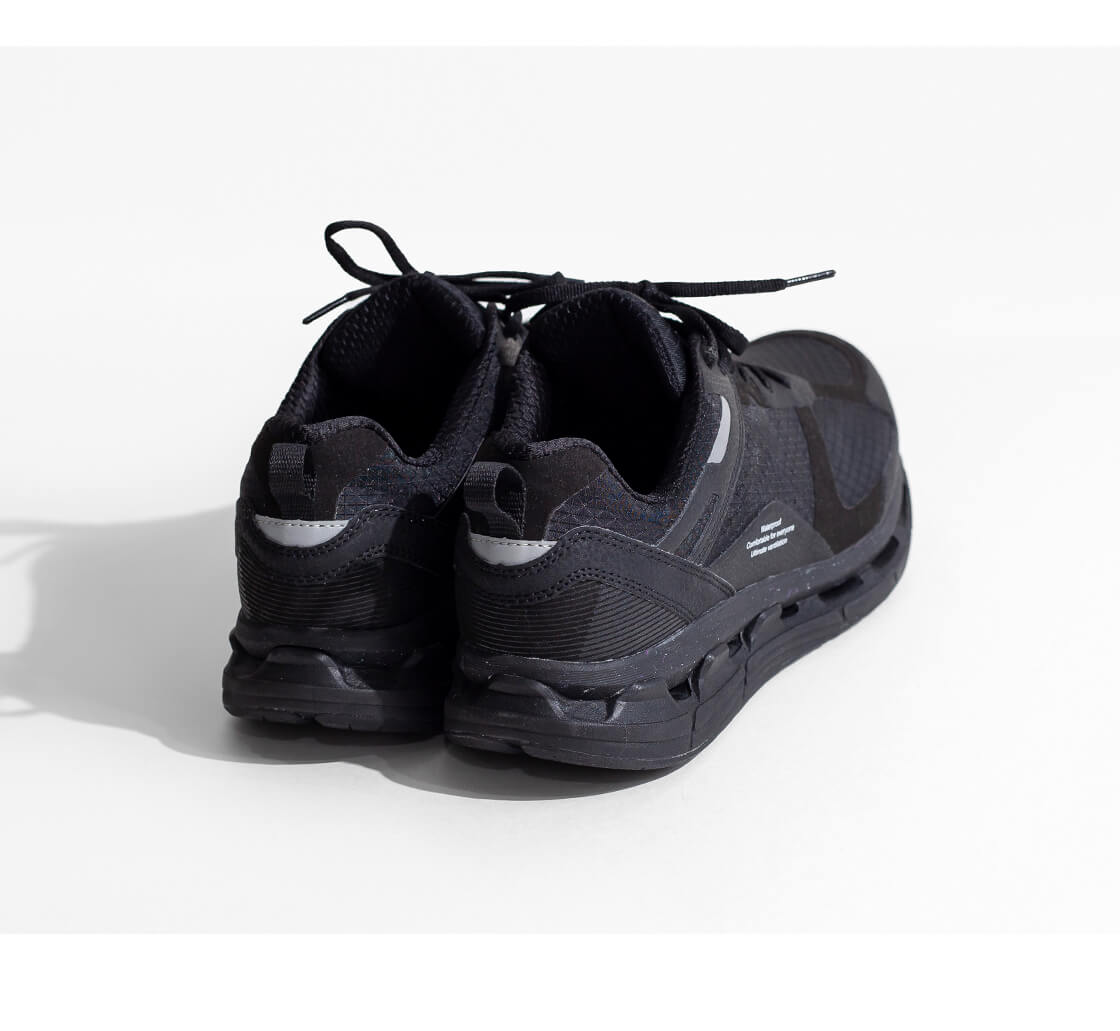 靴内に湿気がたまりやすくなる防水フィルムの代わりに、通気性の優れた防水素材を使用することで、防水性と通気性を両立させた特許取得済みの通気×防水システムを搭載したモイスルー360ならではのスニーカーです。