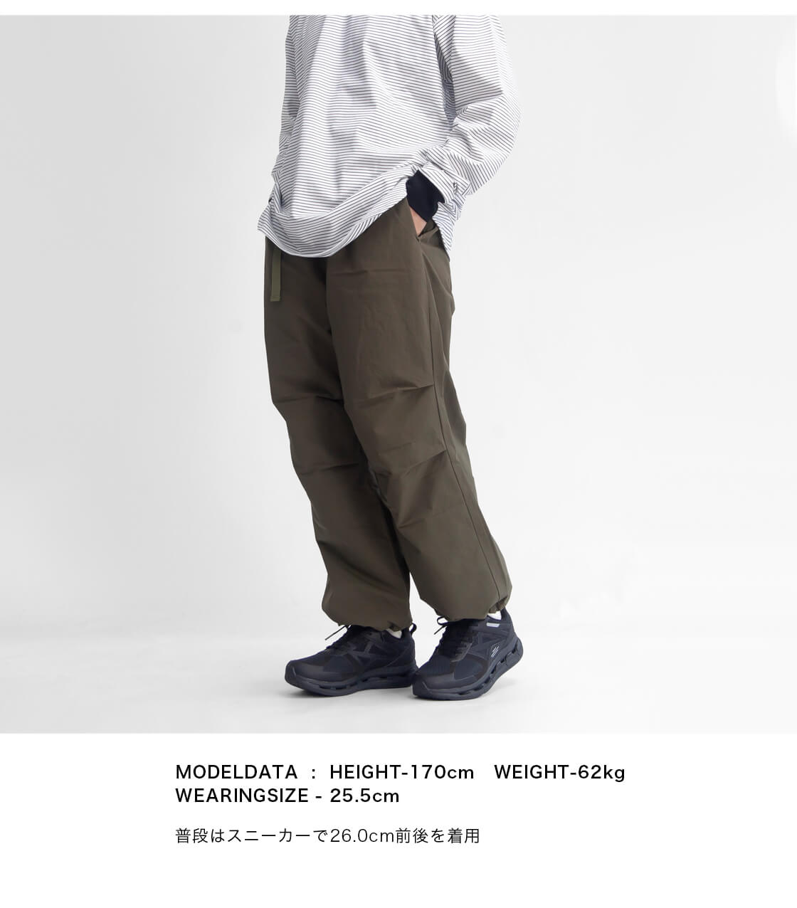 【普段26.0cm前後のスニーカーを履く男性スタッフ(甲低め、足幅標準)で(25.5cm)を着用】