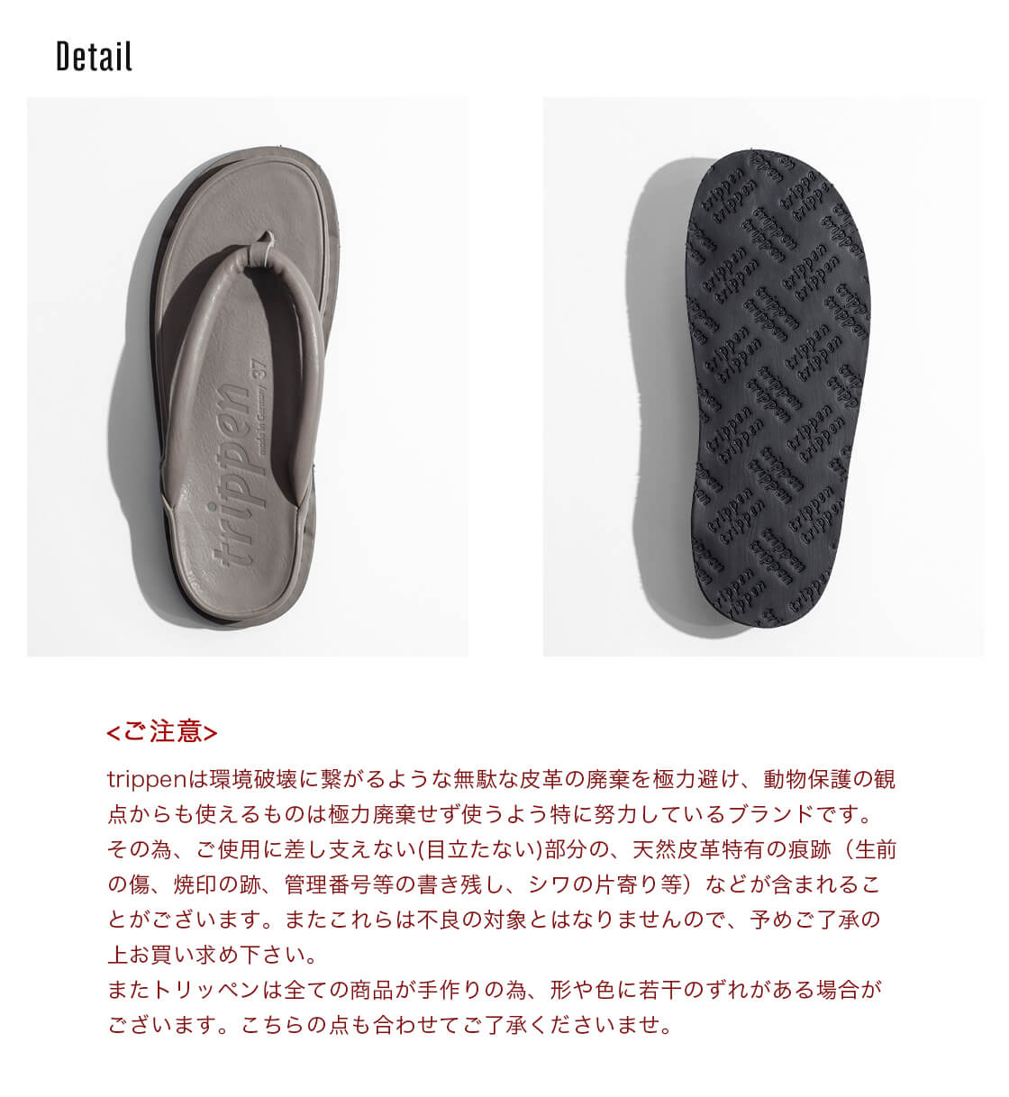 1992年にドイツ・ベルリンのアートギャラリーで靴職人マイスター資格を持つミヒャエル・エーラーとアンジェラ・シュピーツの2人によって木製靴を展示する事からスタートしたブランド。人体構造学上、身体に最も良い作りでありながらファッショナブルかつシンプルなシューズで、日本ではファッション感度の高い若年層から本物志向の大人向けまで幅広い支持を得ており「傑作靴」として世界中で賞賛を得ています。またトリッペンは全ての商品が手作りであり、一点一点その表情が微妙に異なる「オンリーワン」である事も魅力の1つです。