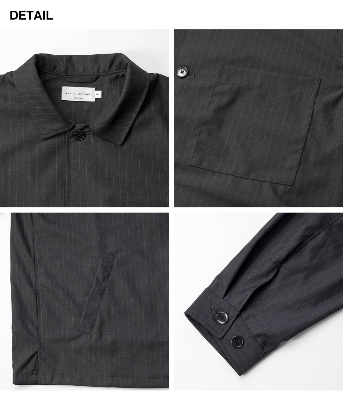 MANUAL ALPHABET(マニュアルアルファベット)はシャツを基本としたメーカー発国産ブランド。MANUAL ALPHABET(マニュアルアルファベット)は"点字"を意味し、 実際に手に取って商品の良さを確かめて欲しいという想いから名づけられています。メーカーだからこそ、気付くヒントを基にクオリティ、コストを大事にし、 高いから良い、安いから悪いでなく、時代の流れにあった、最適なバランスを探求しています。ディテールとシルエットのデザイン性を兼ね備えることで生まれる「佇まい」を大事に、「大人が楽しくなるシャツ」を創り続けていきます。