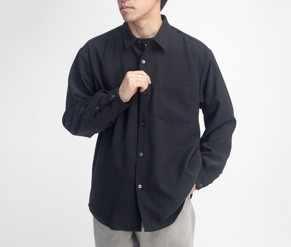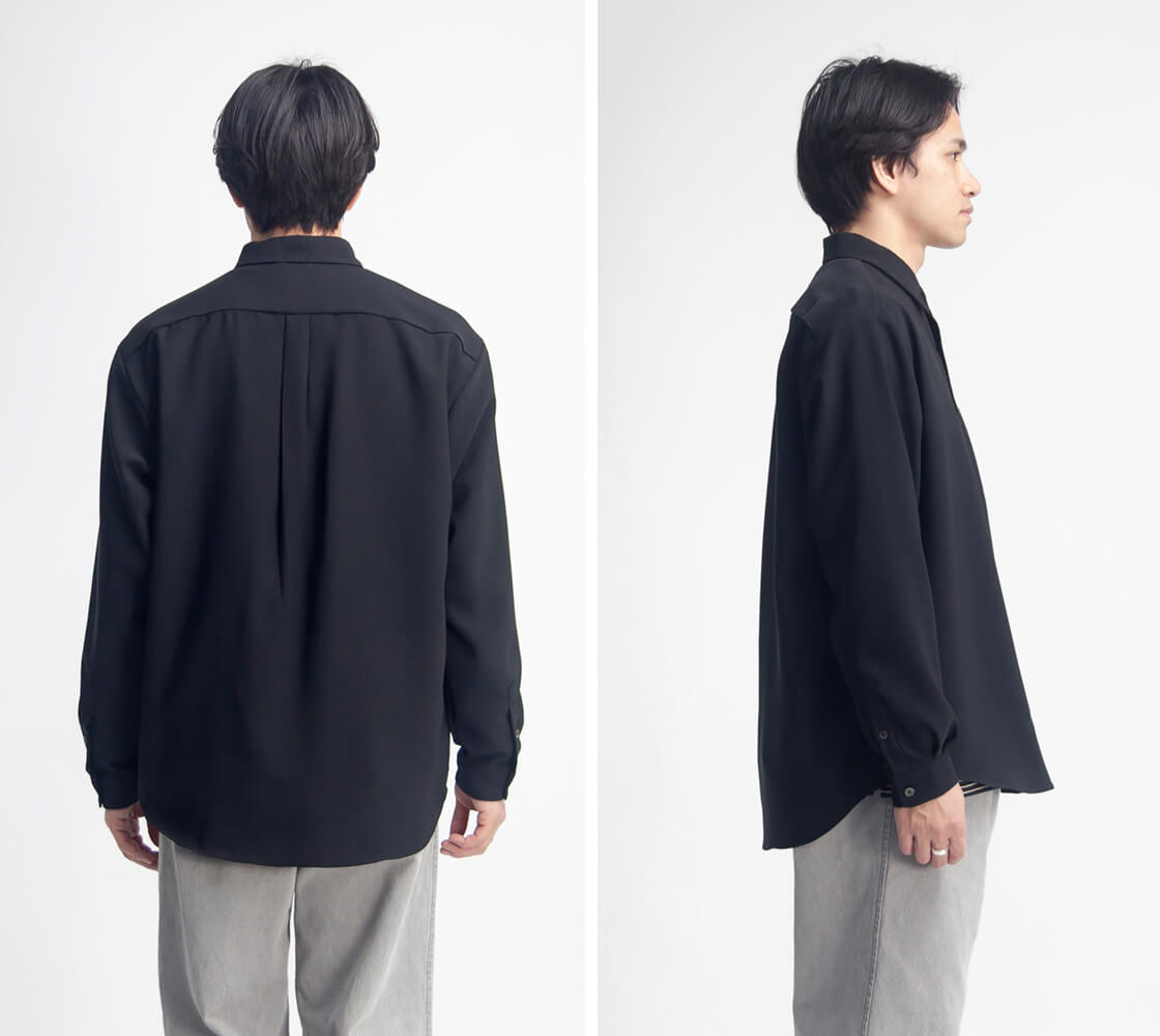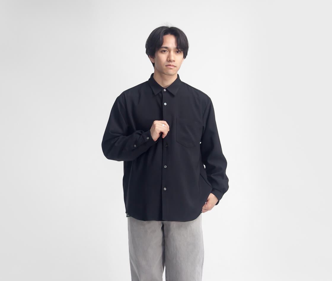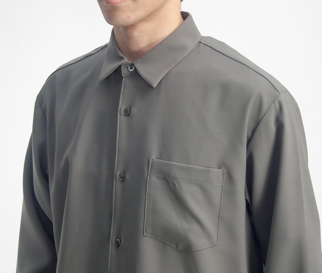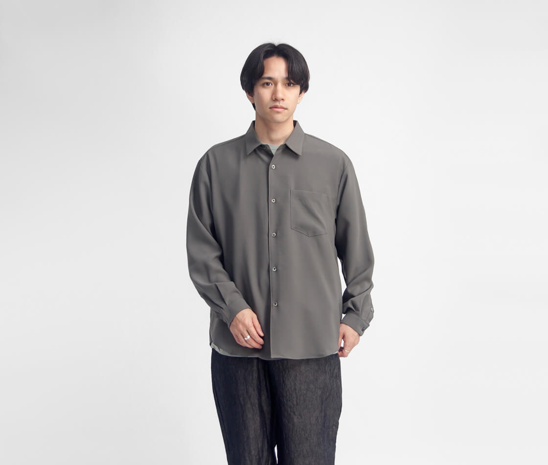 ドレープが美しいウールライクな見た目と、春夏に嬉しい機能性を備えたワイドシャツ。