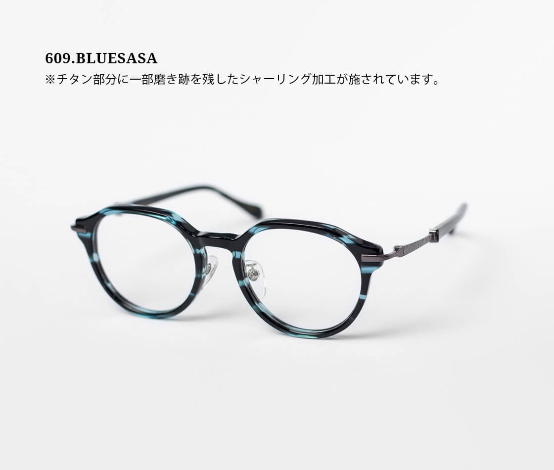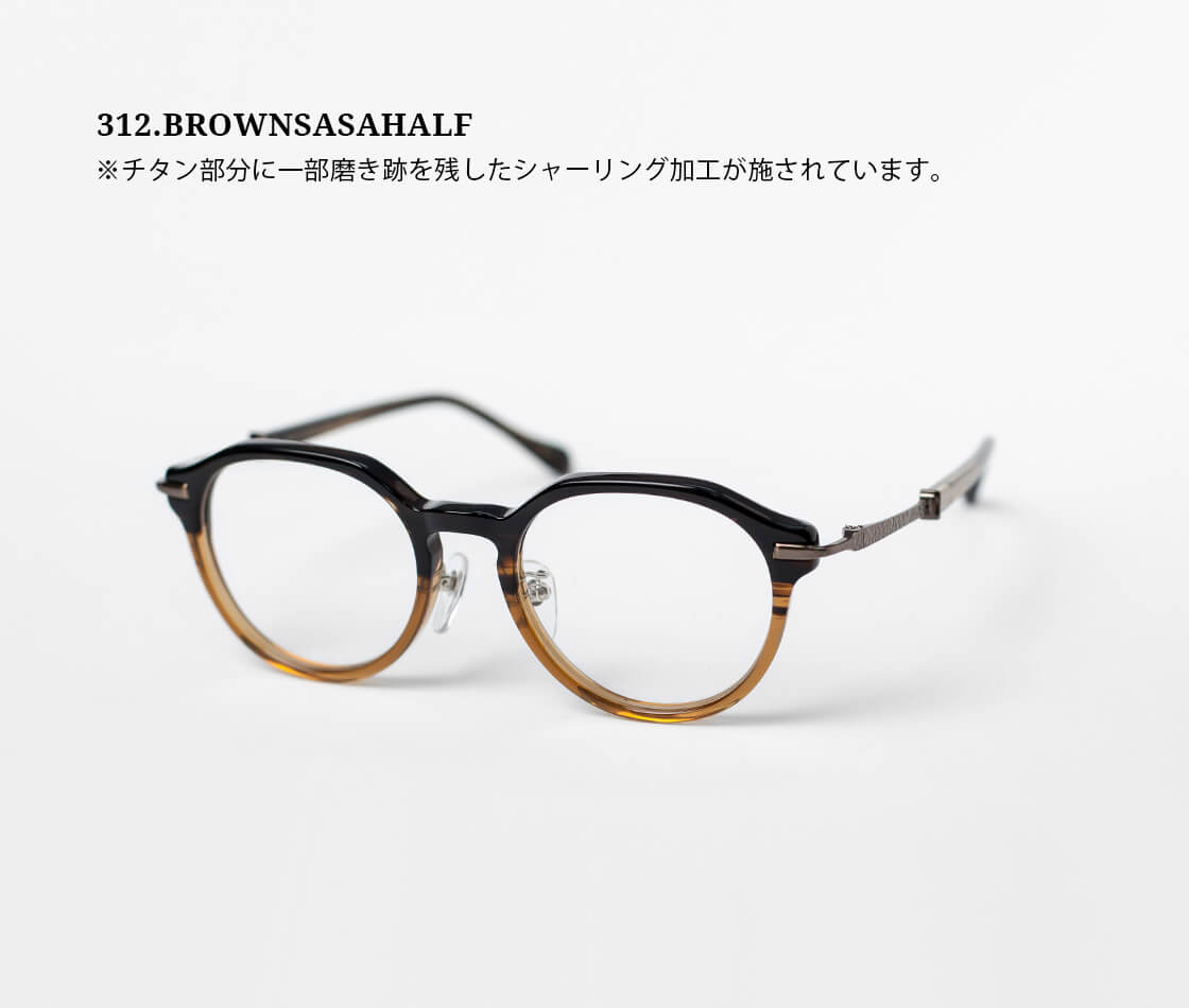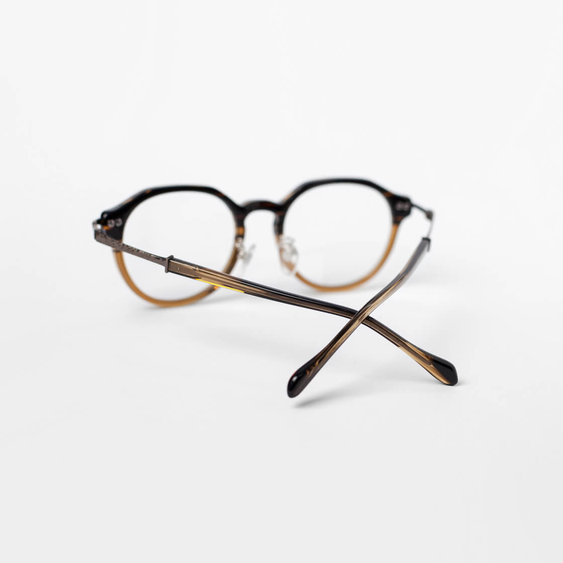 テンプルにはベータチタン材を使用。職人が一本一本ハンマーで仕上げた槌目(つちめ)模様が、さりげない個性と上質感をプラスします。ベータチタンならではの硬すぎず、柔らかすぎない絶妙な弾性により、長時間でもストレスの少ない掛け心地を実現。ノーズパッドは調整可能なクリングスタイプを採用し、フィット感の微調整も可能。やや大きめのサイズ感で、顔幅を選ばずバランスよく掛けられる一本です。