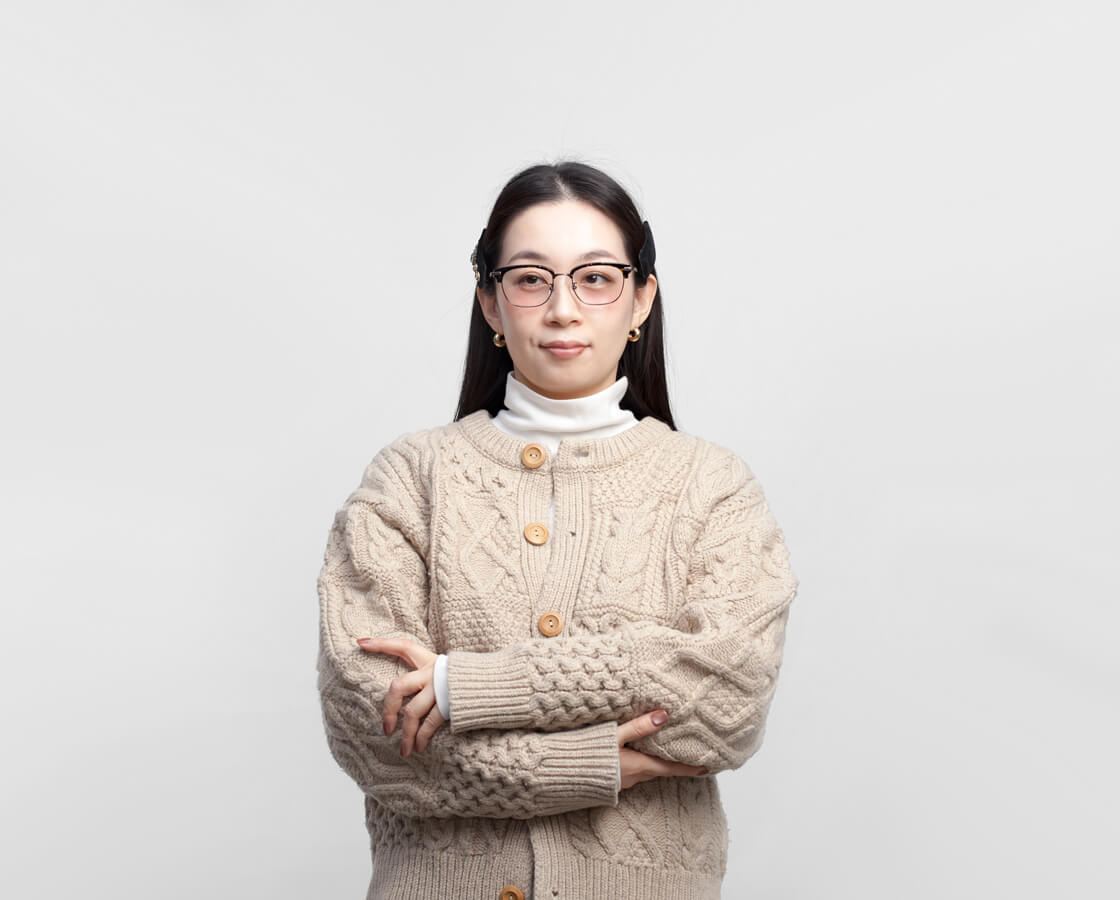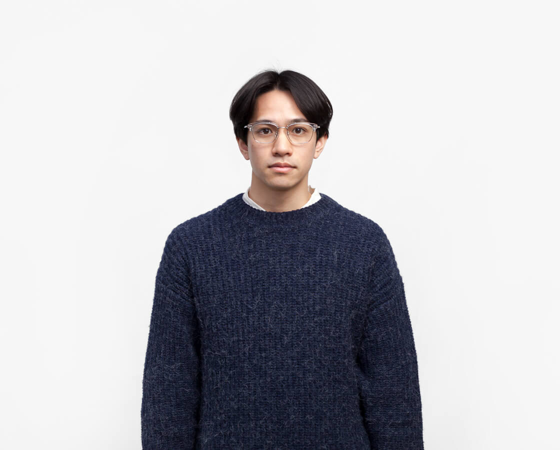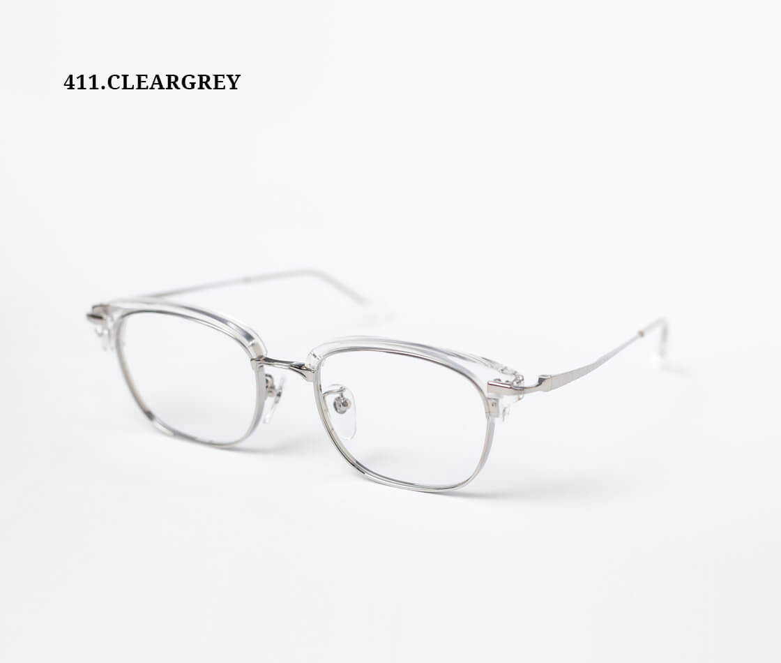 フレームはオールチタンをベースに、ブロウ部分のみアセテートを組み合わせたコンビネーション仕様。異素材ならではの質感のコントラストが、知的で落ち着いた印象を演出します。レンズ周りのチタンに厚みを持たせることで、レンズの厚みが目立ちにくい設計。細身のモデルが多いチタンフレームですが、こちらは強度数の方にもおすすめの一本です。