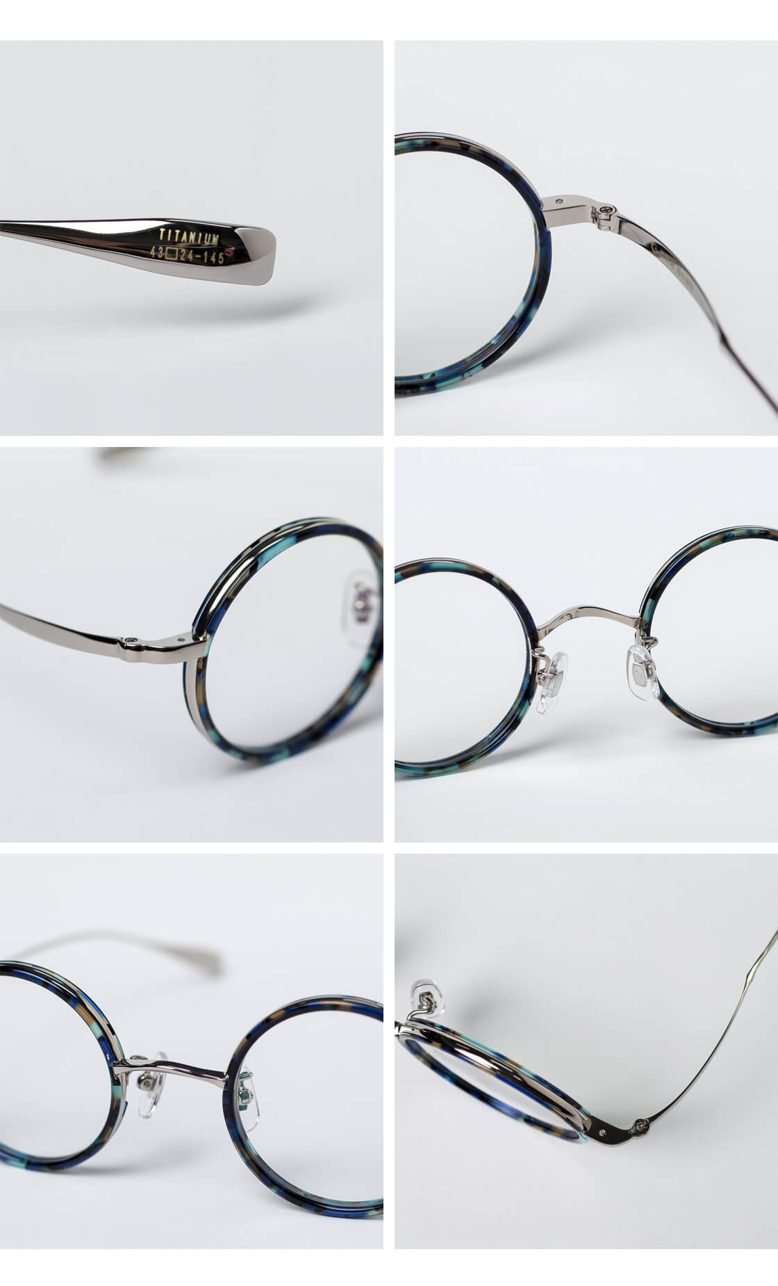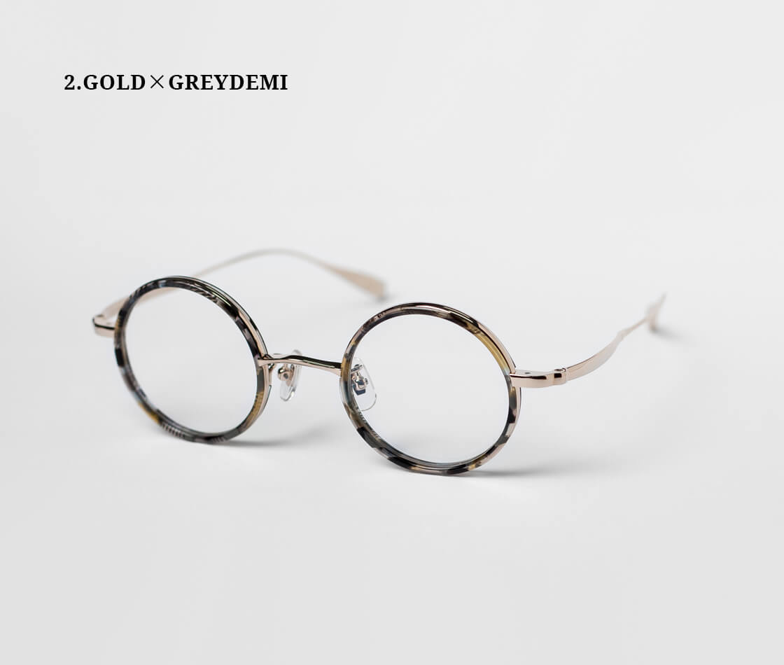 フレーム全体には、軽量かつ強度を誇るチタン素材を採用。レンズ周りを、肌馴染みの良いべっ甲柄のアセテートで縁取ったコンビネーションフレームです。バランスの取れたラウンドフレームは、顔立ちを優しく見せながら、クラシックで知的な印象を演出。シンプルなメタルフレームに、鮮やかなアセテート生地の差し色を使うことで、上品さとカジュアルさを兼ね備え、幅広いスタイルにマッチする汎用性の高いデザインです。