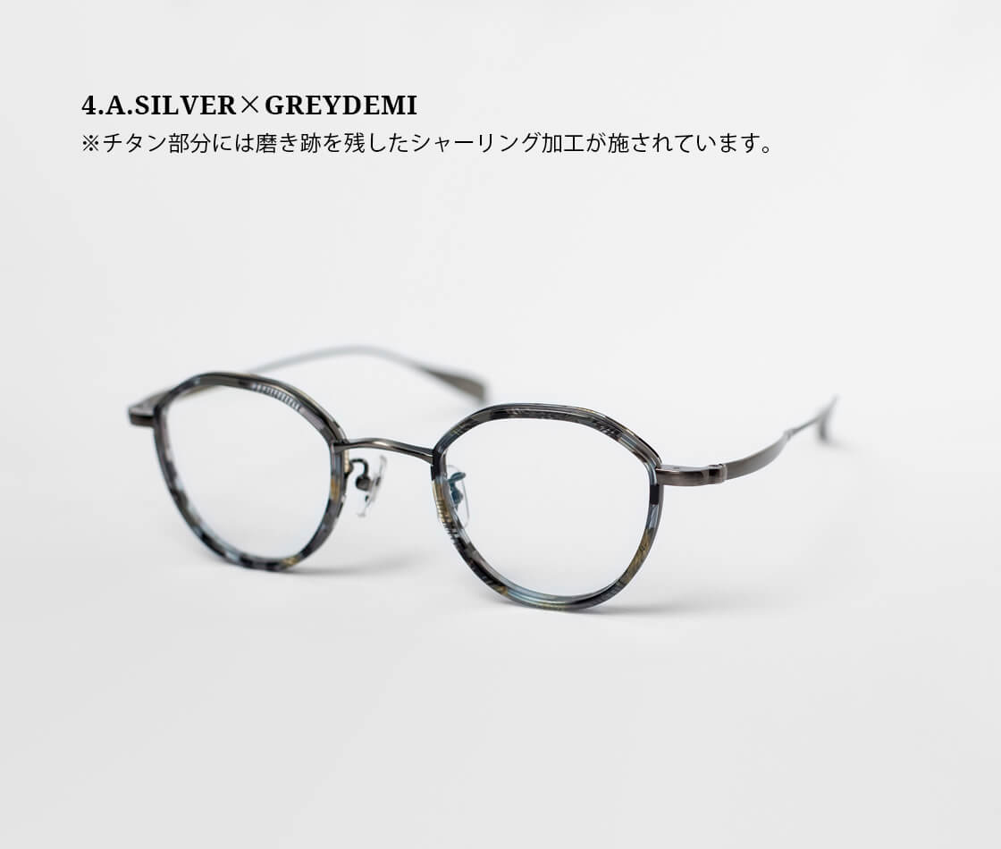 シルバー×ブルー、ゴールド×グレー、ブラック×ブラウン、A.シルバー×グレー