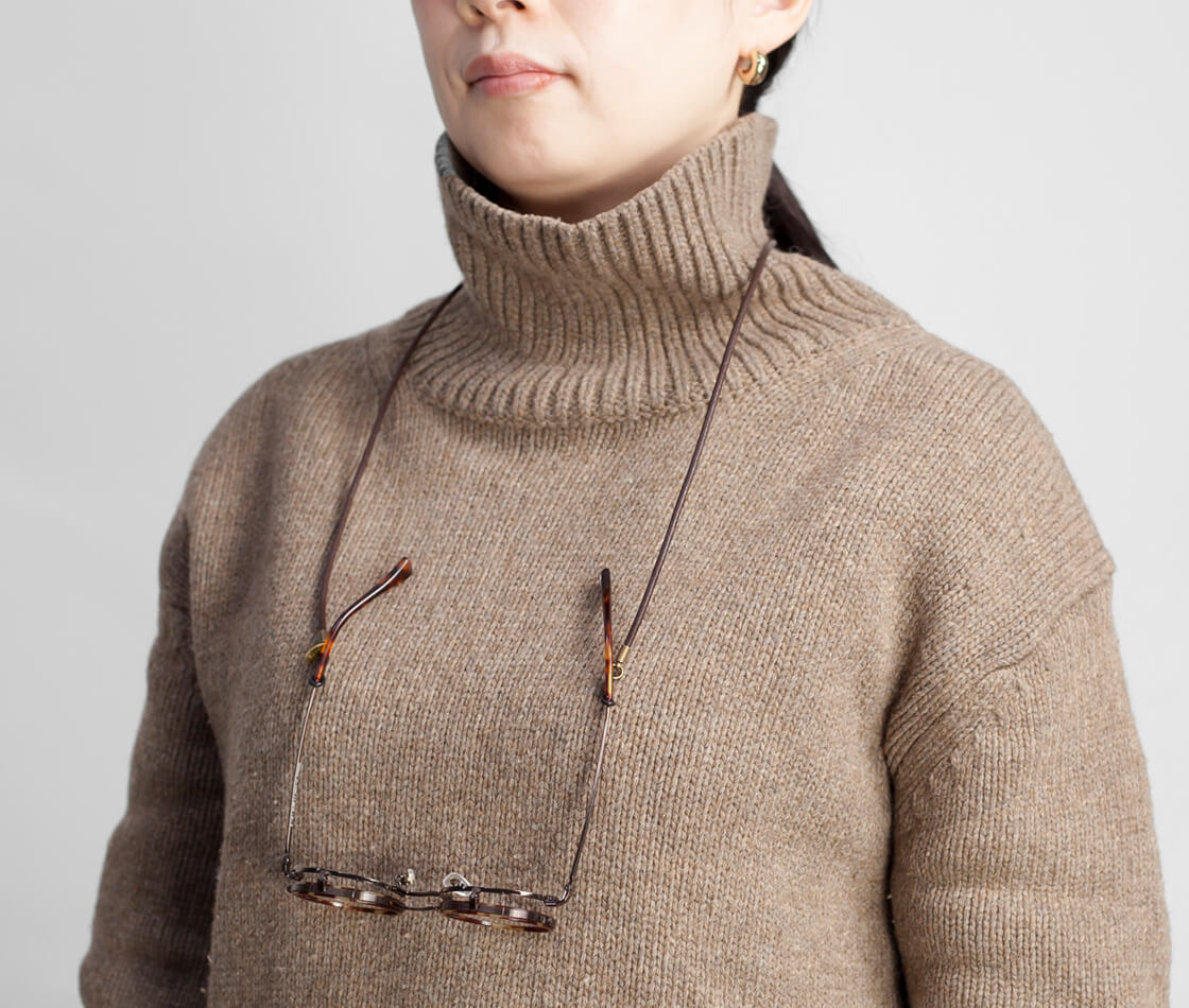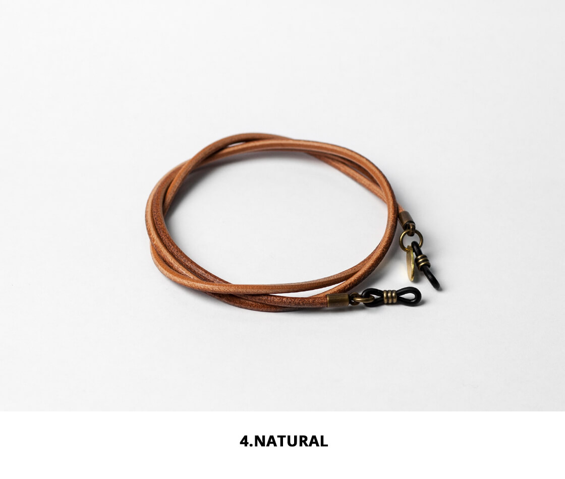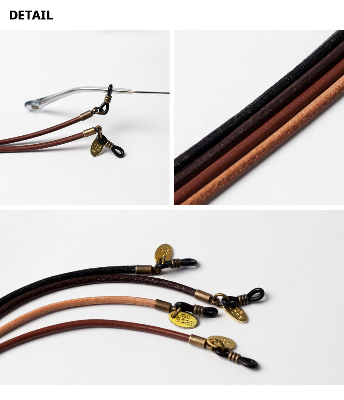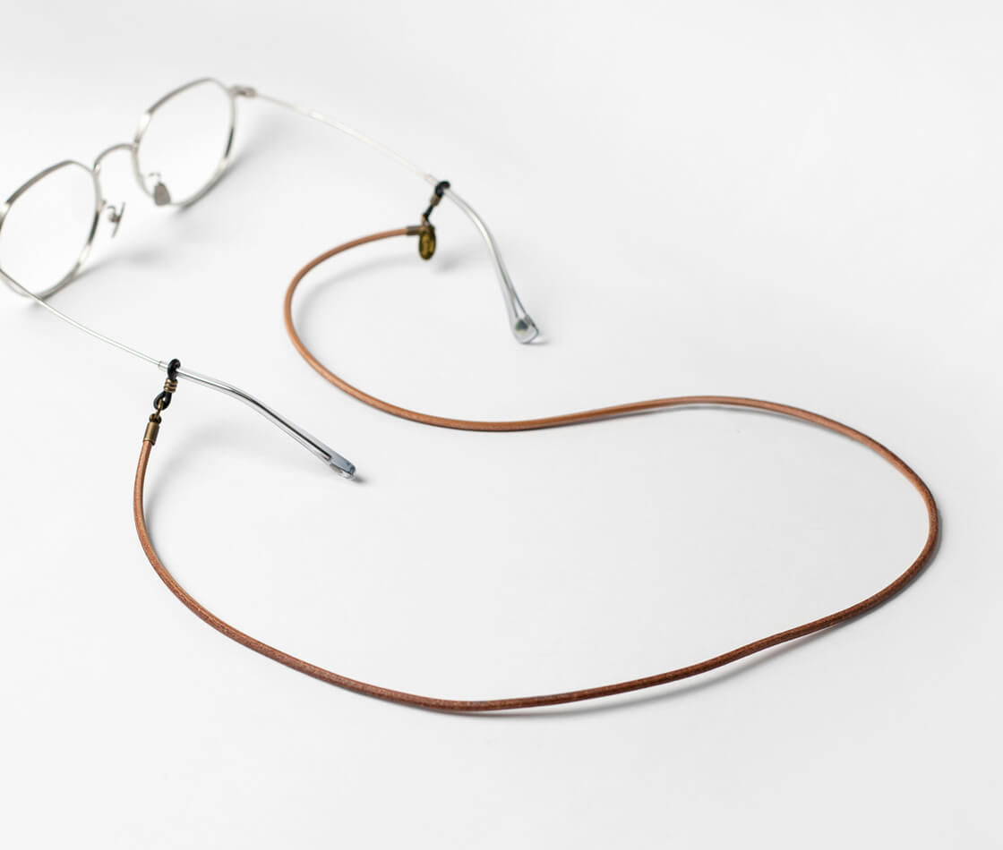 一見シンプルながらも素材選びに妥協のないタンニン鞣しレザーを用いたグラスコード。時間をかけ丁寧に鞣されたベジタブルタンニンレザーは、使い込むほどに他の鞣し革では見られない深みのある色艶へと変化していくのが特徴です。耐久性にも優れており、着用を重ねるごとに革がしなやかになり、より自然なフィット感へと変化していくのも本革ならではの魅力。