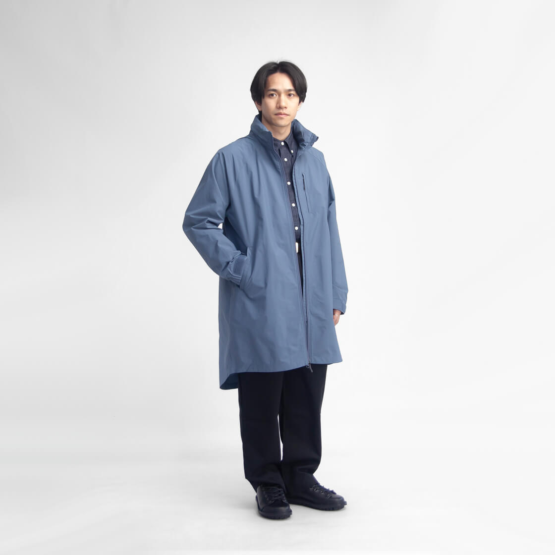 PERTEXを使用しているということはモチロン魅力なのですが、M-65を彷彿させるスタンドカラーコートのデザインというのがミリタリー好きな個人的には推しな一着。無骨さと機能性を、軽やかに纏えるコートです。