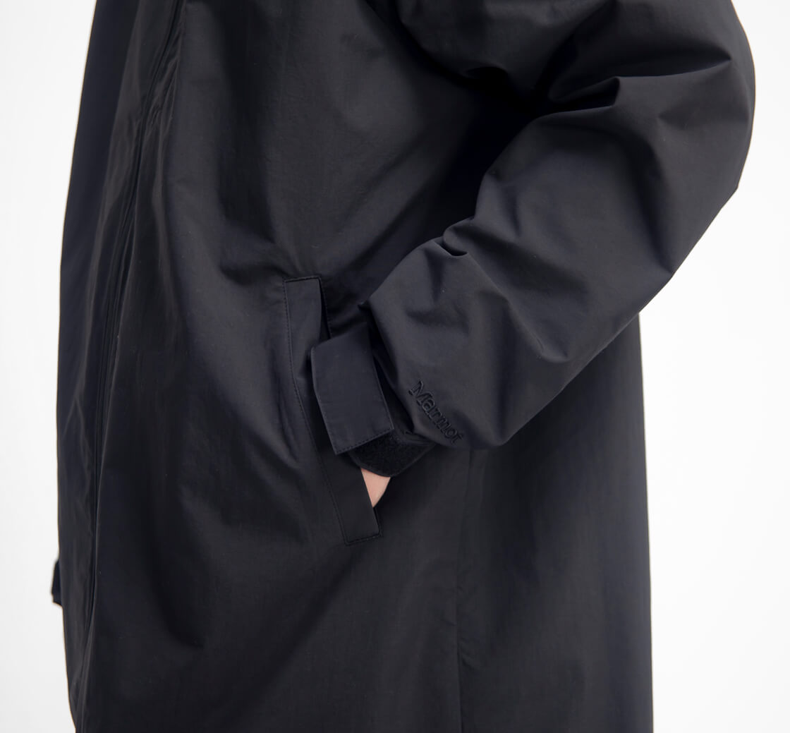 ミリタリーの名作、M-65モッズコートを彷彿させるMarmot(マーモット)のスタンドカラーコート「PERTEX Rockly Coat」。最大の魅力は、耐久撥水性としなやかな柔軟性を兼ね備えた「PERTEX UNLIMITED」の採用。軽やかで動きやすく、天候の変化にも頼れる安心感。街でもアウトドアでも、シーンを選ばず活躍します。スタンドカラーの内側にはフードを内蔵。急な雨にはさっと取り出し、不要なときはすっきり収納できます。袖付けは肩幅の関係ないラグランスリーブ。後ろ裾は長めのフィッシュテール仕様で、ファスナー開閉式のセンターベントを装備。歩行時の足さばきも軽快です。袖口は面ファスナーでフィット感を自在に調整可能。腰位置のポケットに加え、左胸にはファスナーポケットを配置し、スマートフォンや財布などの貴重品も安心して収納できます。フロントは上下から開閉できるダブルファスナー仕様で、シルエットのアレンジも可能に。さらに、首裏やポケット内部にはメッシュ素材を配し、通気性を向上。空気の抜けが良く、長時間の着用でも蒸れにくい快適な着心地を実現しています。