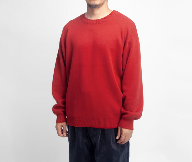 アクリルコットン混紡糸を用いた当店オリジナルLAOTOUR(ロートル)のダブルジャカードニット。袖口と裾をリブ編みで締め、スウェットライクなフォルムで仕上げたシンプルなニットです。チクチク感がなく、厚みもあって、着こなしに関してもスウェット感覚で着用頂けます。