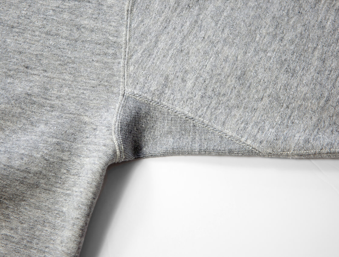 希少な吊り編み機によって生み出された裏起毛生地。ふっくらした柔らかさ、ふくよかな着心地は極上の一言。