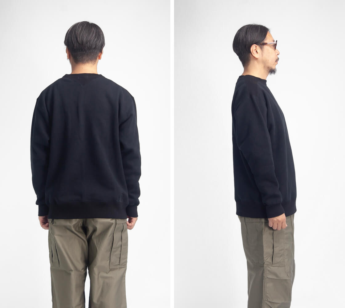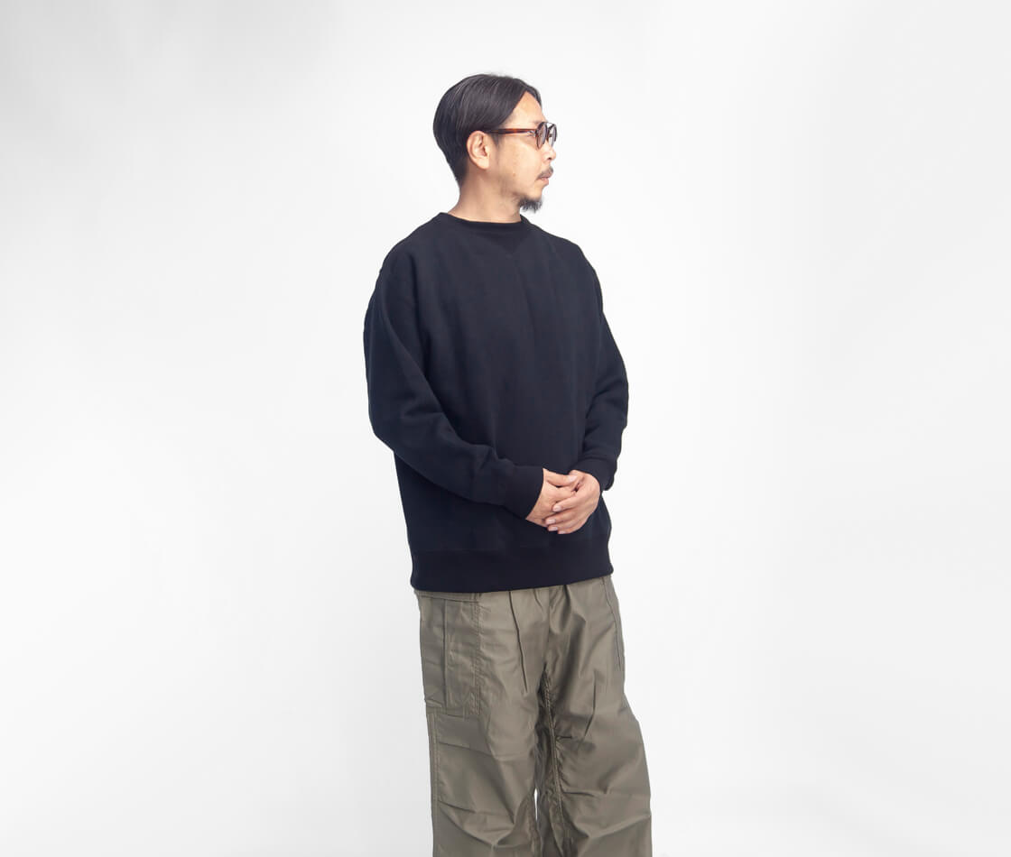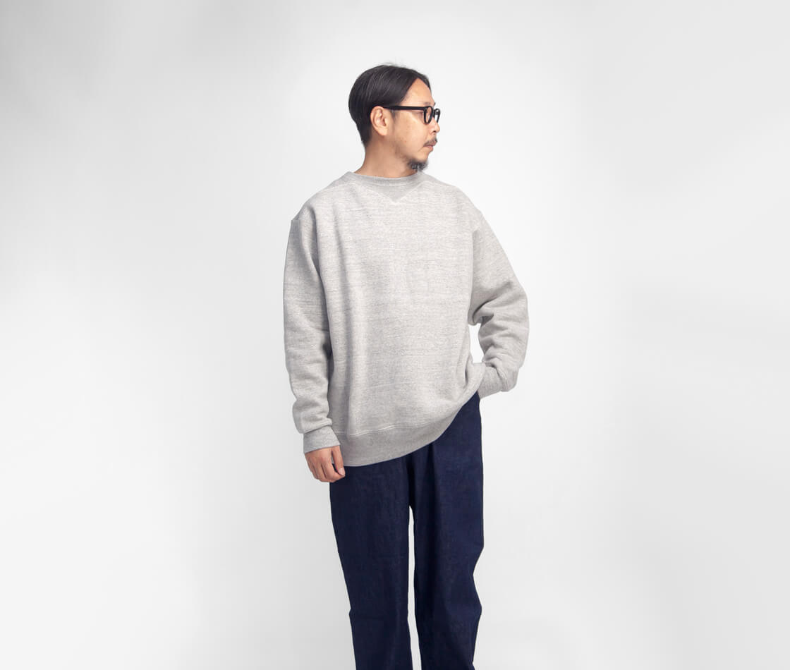 1920~30年代にウールで作られていたフットボールシャツを、コットン裏起毛で現代的に蘇らせたのがこのモデル。首から肩にかけてのリブ編みフライス、脇下のガゼットなど運動性を高めた当時のディティールをそのままに再現。筒状に編みたてられたスウェット生地をそのまま活かした丸胴のため、身頃脇には縫い目がありません。縫い目のゴロツキがなく着心地も優しい。さらに袖、裾のリブに関しても同様に無縫製の筒リブになっており、作り手のこだわりが感じられます。現代のスタイルでの着用を前提としたゆったりな身幅、シルエット。復刻と言えどもスタイリング頂きやすくサイズ感が設定されています。