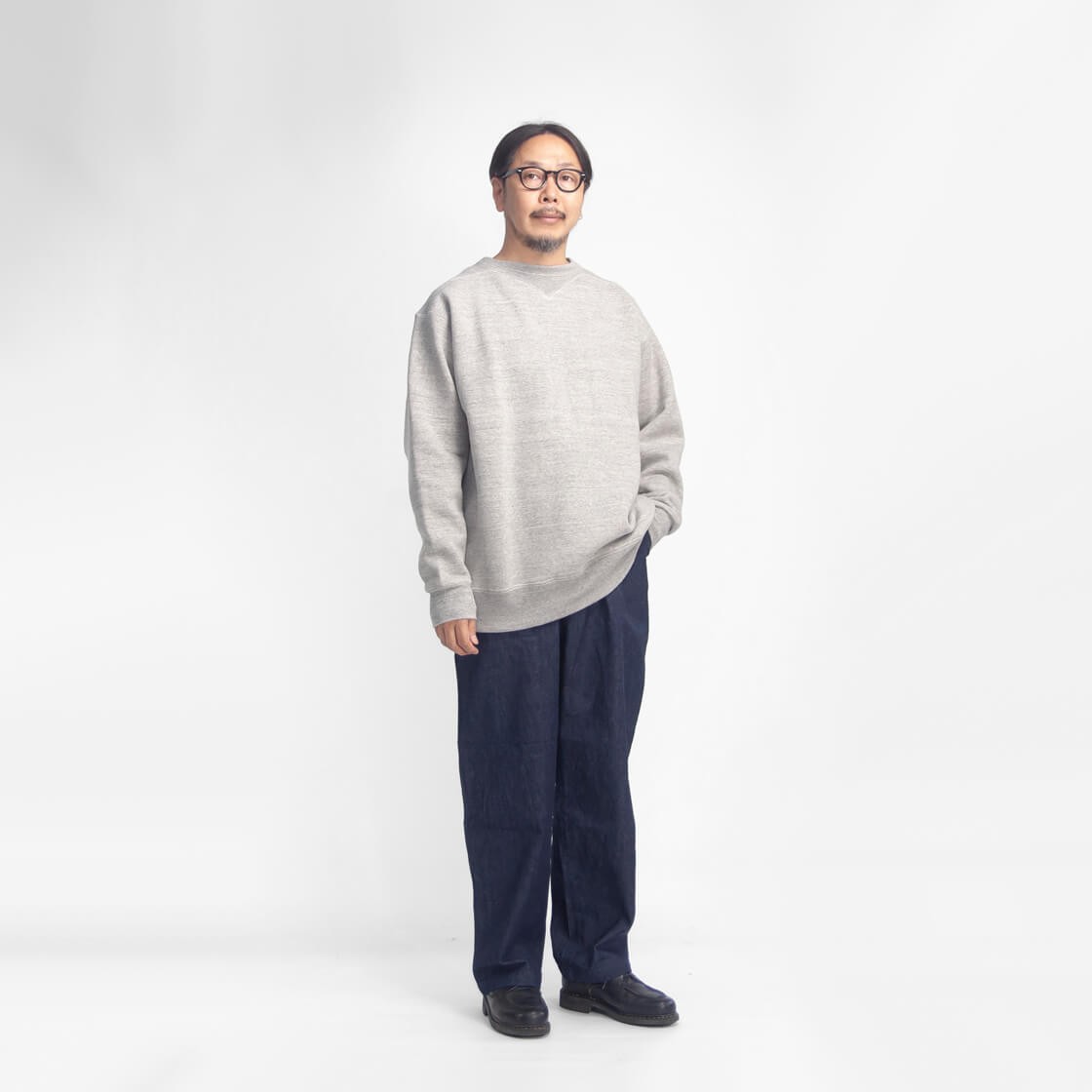 40サイズを着用しました。ゆとりのあるワイドな身幅でかなり余裕を感じます。柔らかい生地感で厚さもしっかりあって安心感のある着心地です。肩幅も広めで大きく肩が落ちます。僕の場合、40サイズで余裕があるので、気持ちスッキリと着用するなら38サイズでもいいかなと思います。