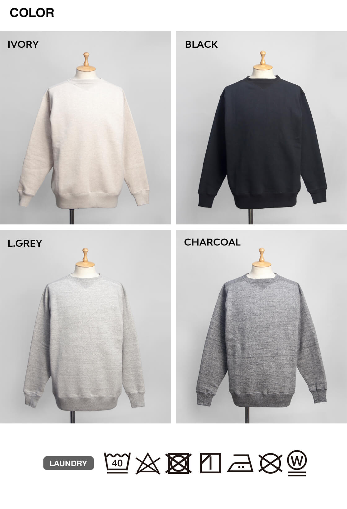 アイボリー、ブラック、ライトグレー、チャコール