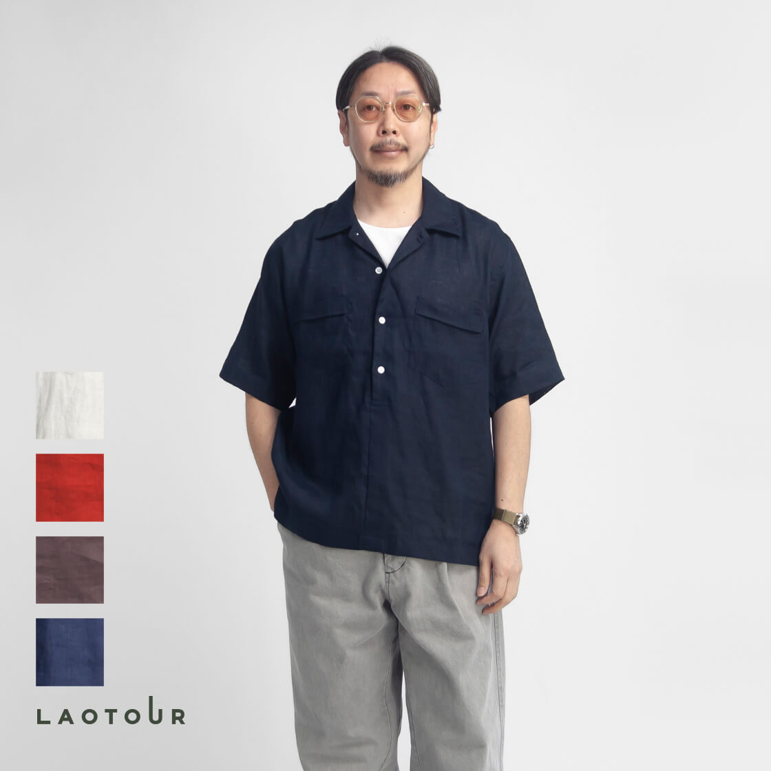 クラシックなキューバシャツという事で、スラックスの様な緊張感のあるパンツにも合うし、ナイロンの素材感でスポーティーなトラックパンツなんかとも相性良しで汎用性の高さもウリ。