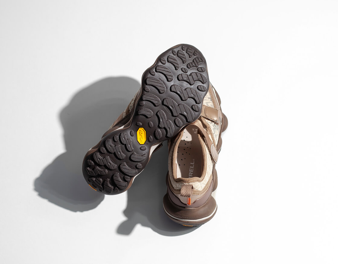 メレルが培ってきたスピードハイキングの機能性をそのままに、都会的で洗練されたデザインに仕上げた「スピード アーク マティス トレック メリージェーン」。スポーツシューズの機能的なつくりを、モードやストリートの感覚で今っぽく表現した一足です。甲にストラップが2本あるメリージェーンスタイルのアッパーに、目を惹くマシュマロ状のような外観のミッドソール「FLOATPRO」フォーム、最高レベルのグリップ性を発揮する「Vibram MEGAGRIP×Vibram TRACTION LUG」など、アウトドアシューズの未来を垣間見せつつ、洗練されたスタイルに仕上げたハイキングシューズです。