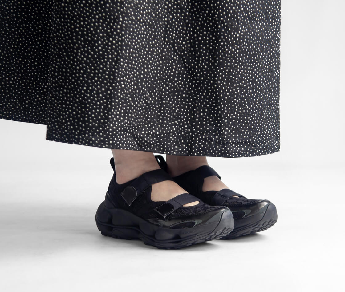 革新的なハイキングソールとフェミニンなレース調のアッパー素材を融合させた、一部店舗取扱いの限定モデル「SPEED ARC MATIS TREK MJ」。