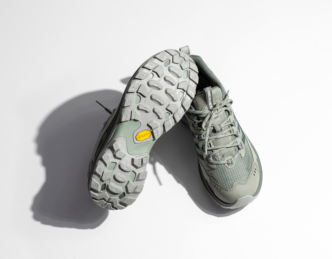 アウトソールには、世界有数のイタリアのソールメーカー「Vibram (ヴィブラム)」 社のメレル専用ソール「Vibram TC5+」を使用。様々なアウトドアアクティビティに対応し優れたグリップ力と耐久性を発揮します。そのラグ形状は、細かな段差のあるVibram最新特許技術の山型形状ラグTRACTION LUGで製作。この形状により、表面積が50%増加することで安定性を高め、トラクション性能が最大25%向上するというシロモノ。