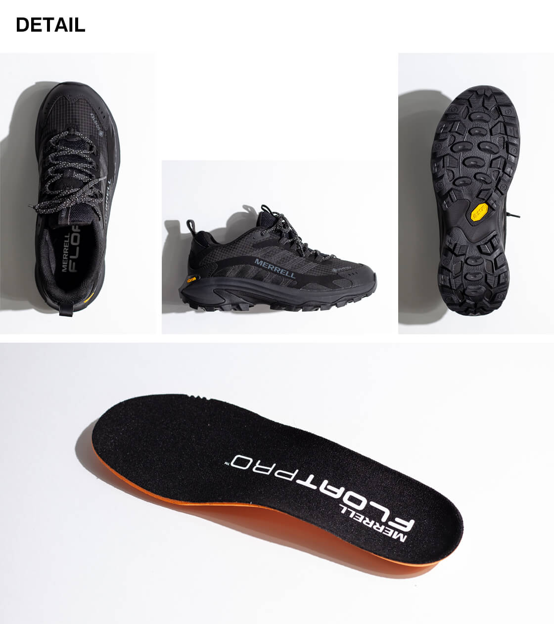 高い機能性・グリップ力を持つ、メレル専用のVibramアウトソール。ミッドソールは軽量でクッション性・反発弾性に優れたFLOATPRO。