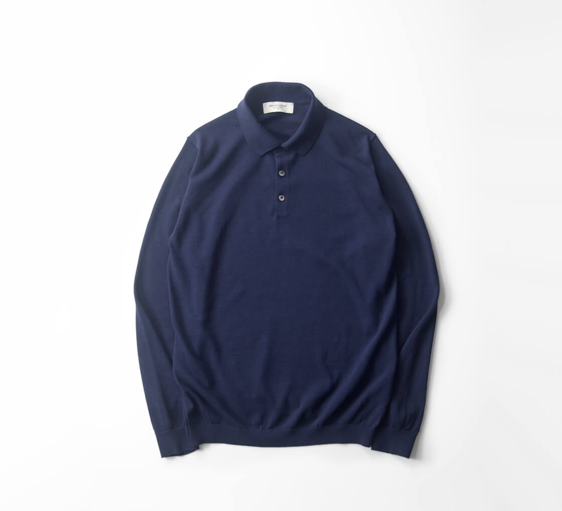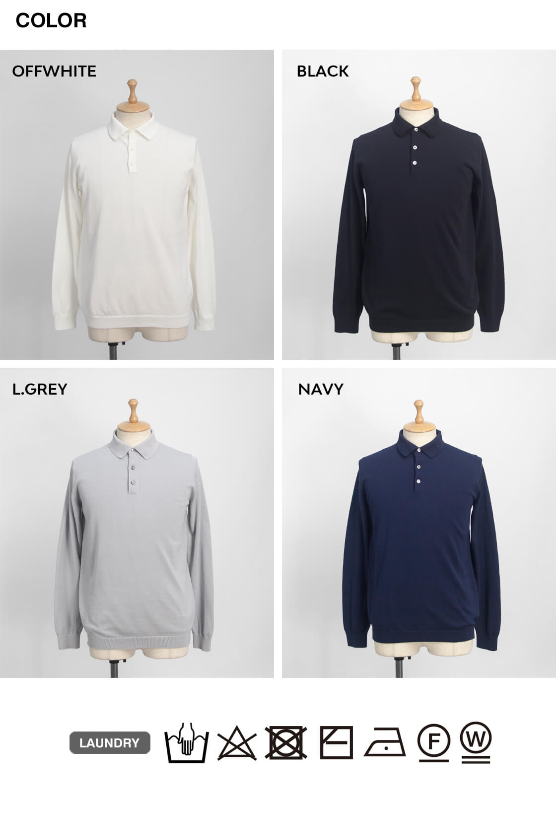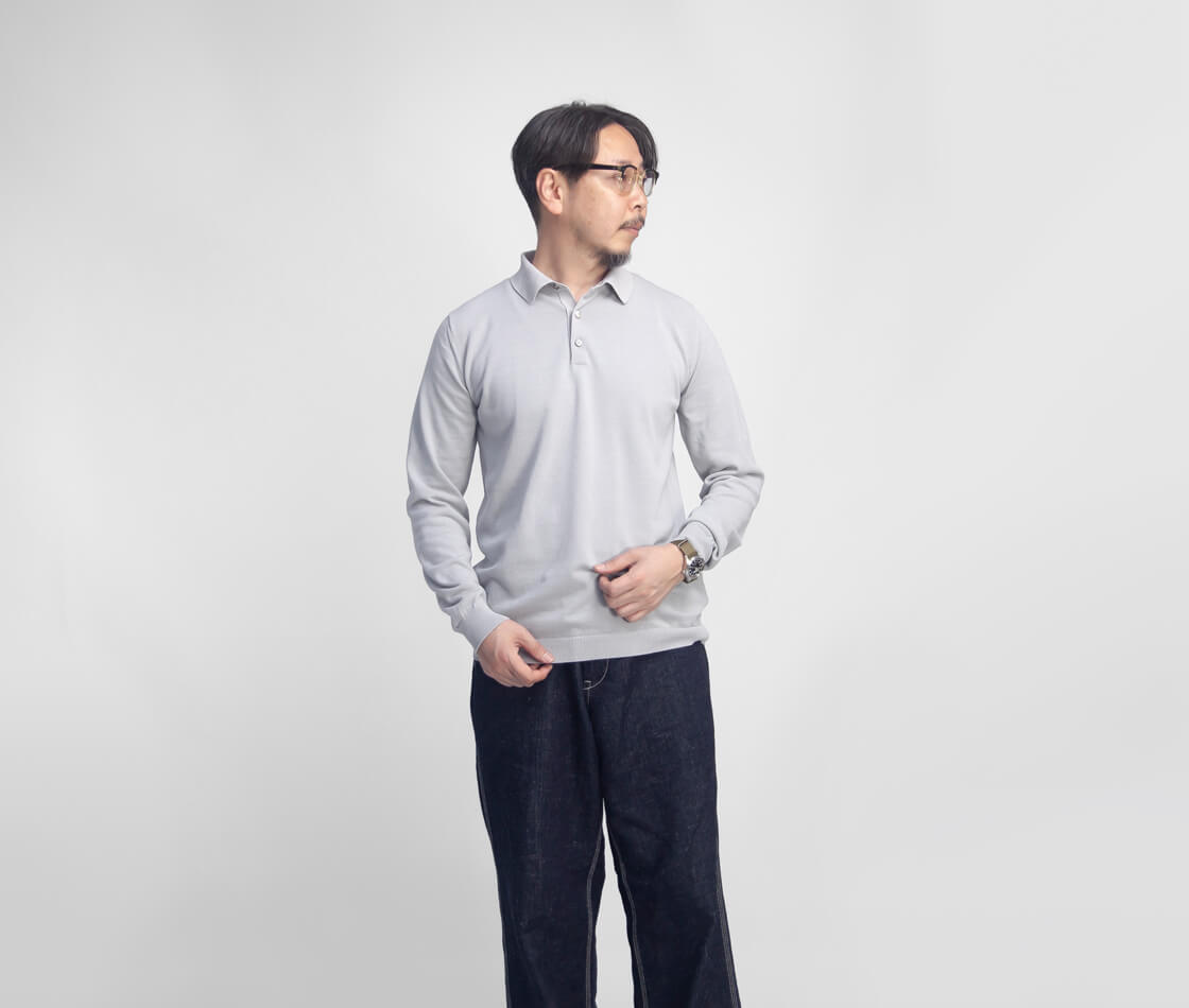 スイス発のアイスコットンを使用した涼しく着れる長袖ニットポロ。ビジネスシーンにも使いやすく、オンオフ着られる一着です。