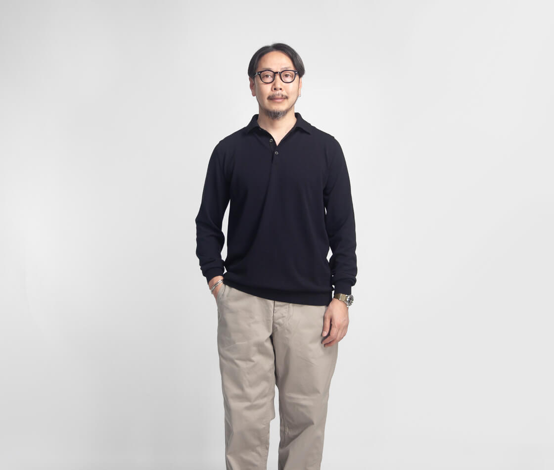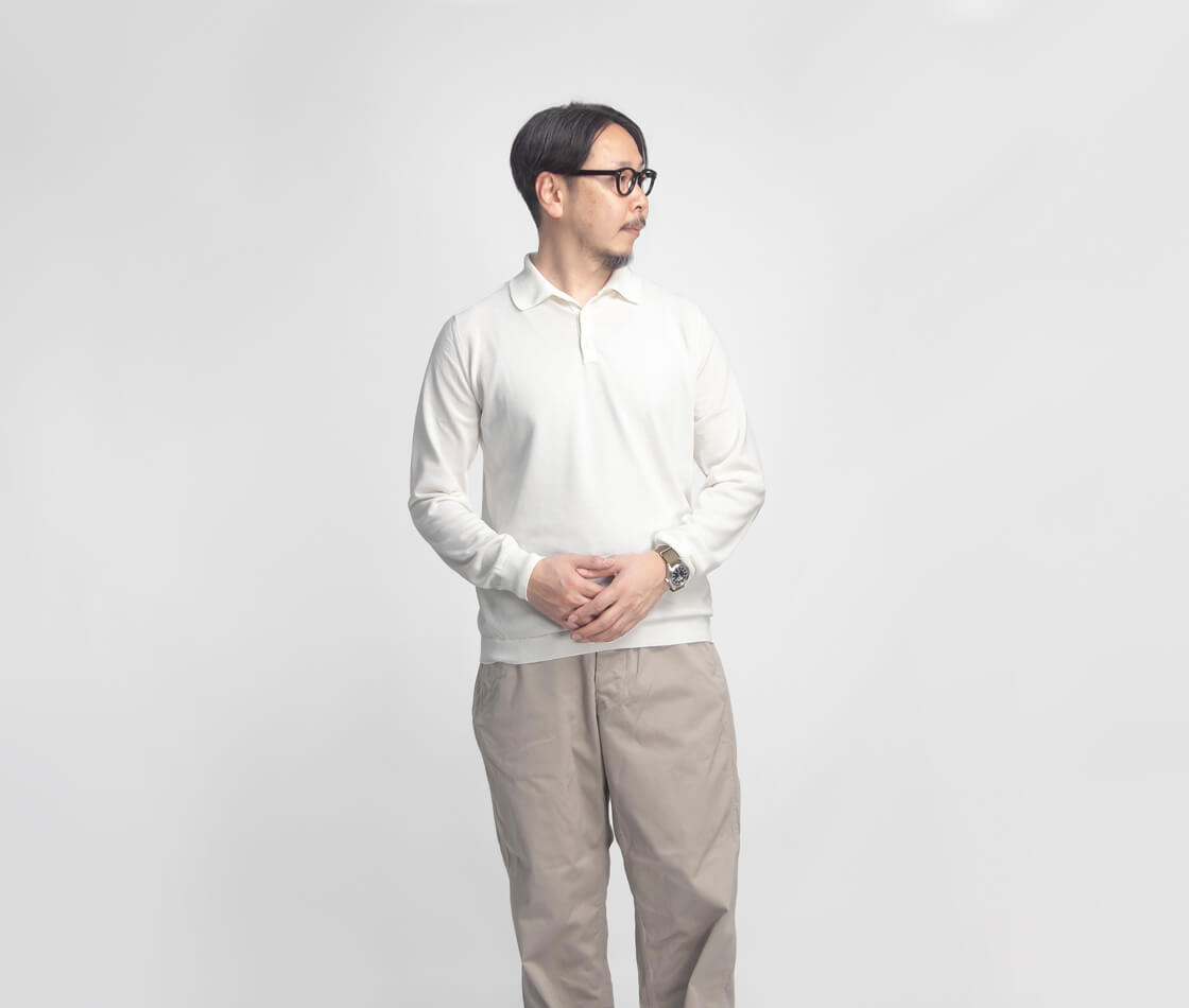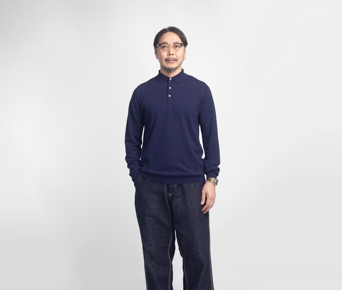 スイス発のアイスコットンを使用した涼しく着れる長袖ニットポロ。ビジネスシーンにも使いやすく、オンオフ着られる一着です。
