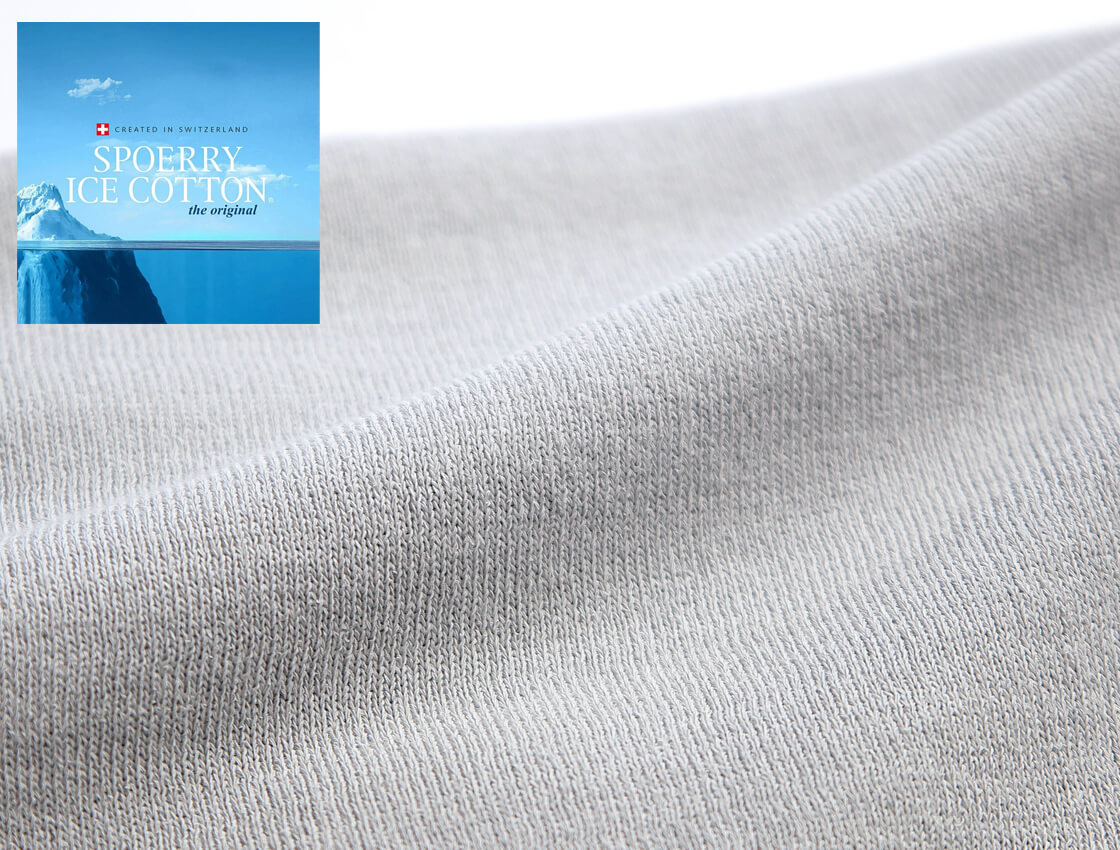 スイス発の接触冷感技術で、麻の様なシャリ感を持つ夏でもさらっと爽やかなアイスコットン。
